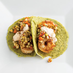 - In a large skillet, heat bacon drippings over medium-high heat. Add shrimp; sauté until pink and firm, 2 to 3 minutes. Serve shrimp in Okra Tortillas. Top each taco with 2 tablespoons Roasted Corn Relish and 1 tablespoon bacon jam mixture.