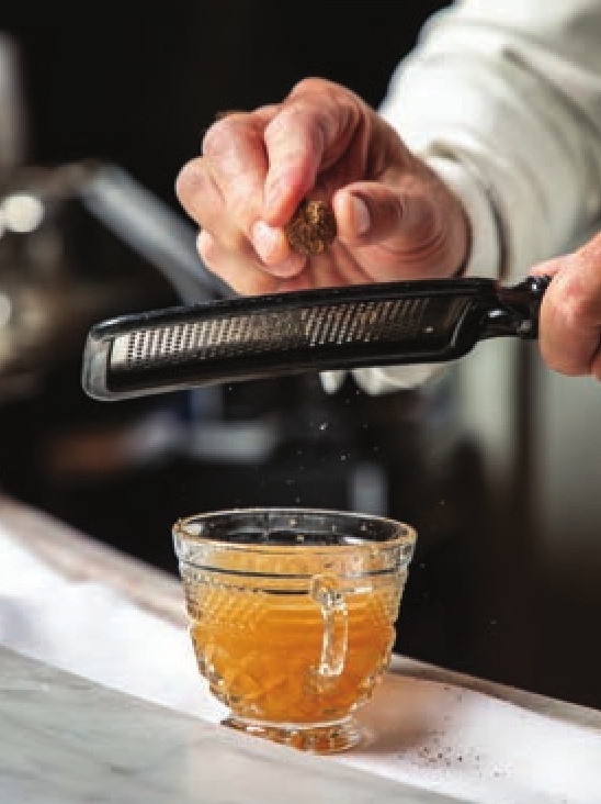 With the Mardi Gras season just up ahead, whether you’re throwing a king cake party, attending an extravagant ball, or prepping for a long, beautiful Saturday filled with festive parades, I encourage you to reconsider the OG of cocktails: punch. I’m not talking about the hooch you made in college in a trash bag-lined garbage can. I’m talking old-school punch made with good-quality spirits and simple ingredients. If there is one book that had a huge impact on my appreciation of cocktails and their history, it was David Wondrich’s Punch: The Delights (and Dangers) of the Flowing Bowl. As a self-proclaimed host and massive fan of a good dinner party, this book opened my eyes to creating big-batch cocktails. A beautiful, well-made bowl of punch needs to consist of merely five components, or as many as 50, although simpler is often better in my experience: strong (spirit, but this is negotiable if you want a nonalcoholic or a low ABV punch as well), weak (water, tea, even coffee, etc.), sour (typically lemon and/or lime juice), sweet (sugar, but keep in mind the sweetness level of other ingredients), and spice (nutmeg is great, but also think bitters or cinnamon or star anise, etc.). Put it all in a lovely glass bowl, add a block of ice containing citrus slices or some other seasonal ingredient frozen within, and grate a bit of nutmeg on top—now you have a ready-made cocktail for your guests or fellow parade-goers without having to play bartender all day or night. I love making punch for gatherings. They can be as loose and creative as whatever you have in the pantry and fridge. Lastly, remember to taste as you go. You can add, but you cannot take away. Punch creation is more art than science, so just as when you are making your grandmother’s soup, taste as you go and adjust as you see fit.