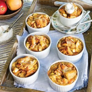 With apples, bourbon, and a dollop of boozy whipped cream, these individual bread puddings are the ideal way to end a fall dinner.