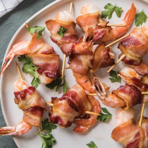 Par-cooking the bacon before wrapping it around the shrimp ensures extra-crispy results.