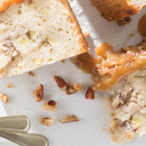 This cake is layered with a decadent bananas Foster-style filling and drizzled with a rum-spiked caramel sauce.