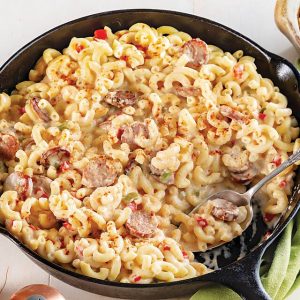 Mac and cheese is a surefire favorite, and this spicy andouille version is unbeatable.