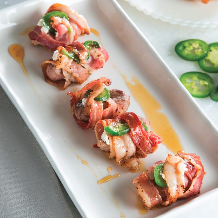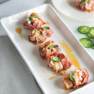 Jalapeño, Creole cream cheese, bacon, and cane syrup are all you need in addition to the duck breasts. Roll them up, secure them with a toothpick, light up your grill, and enjoy!