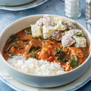 - Hot cooked rice and Creamy Potato Salad, to serve