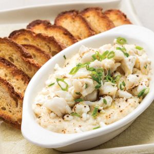 - Top dip with sautéed crabmeat, and garnish with green onion and Creole Seasoning, if desired. Serve with baguette slices.