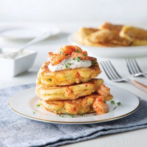 These cornmeal cakes have plenty of chopped crawfish tails for some Bayou State flavor.