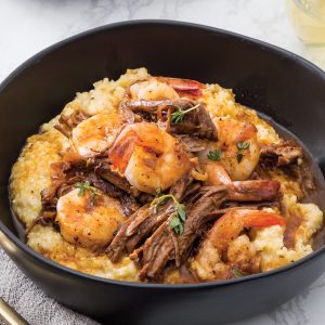 We thought we couldn’t love shrimp and grits more—until we added debris. The savory meat and gravy help take this Southern classic to the next level.