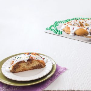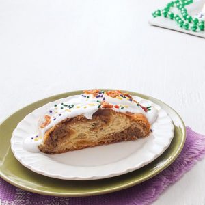 Maggie also suggests putting your own spin on the king cake by adding different ingredients to the filling, such as pecans or coconut. “New Orleans has a traditional filling, but I think it’s always cool to put new stuff in there,” she says.