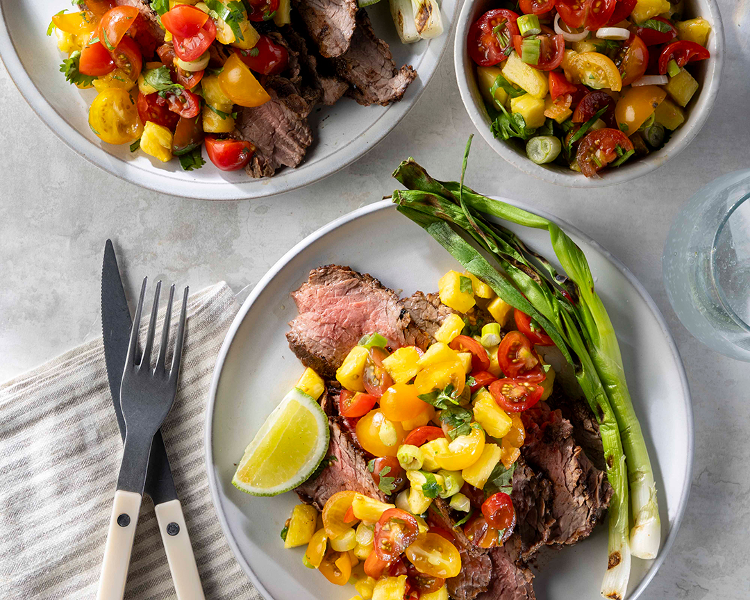 Bold, smoky grilled flank steak pairs perfectly with a sweet, tangy tomato-pineapple salsa. A fresh, flavor-packed dish with just the right kick of heat.