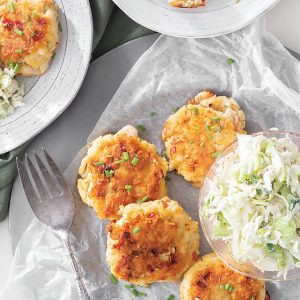 Served with a crunchy slaw, these fish cakes make an excellent appetizer or a full meal.