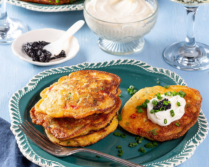 These okra-studded pancakes are just waiting to be topped with a dollop of crème fraîche or a pat of good butter.