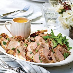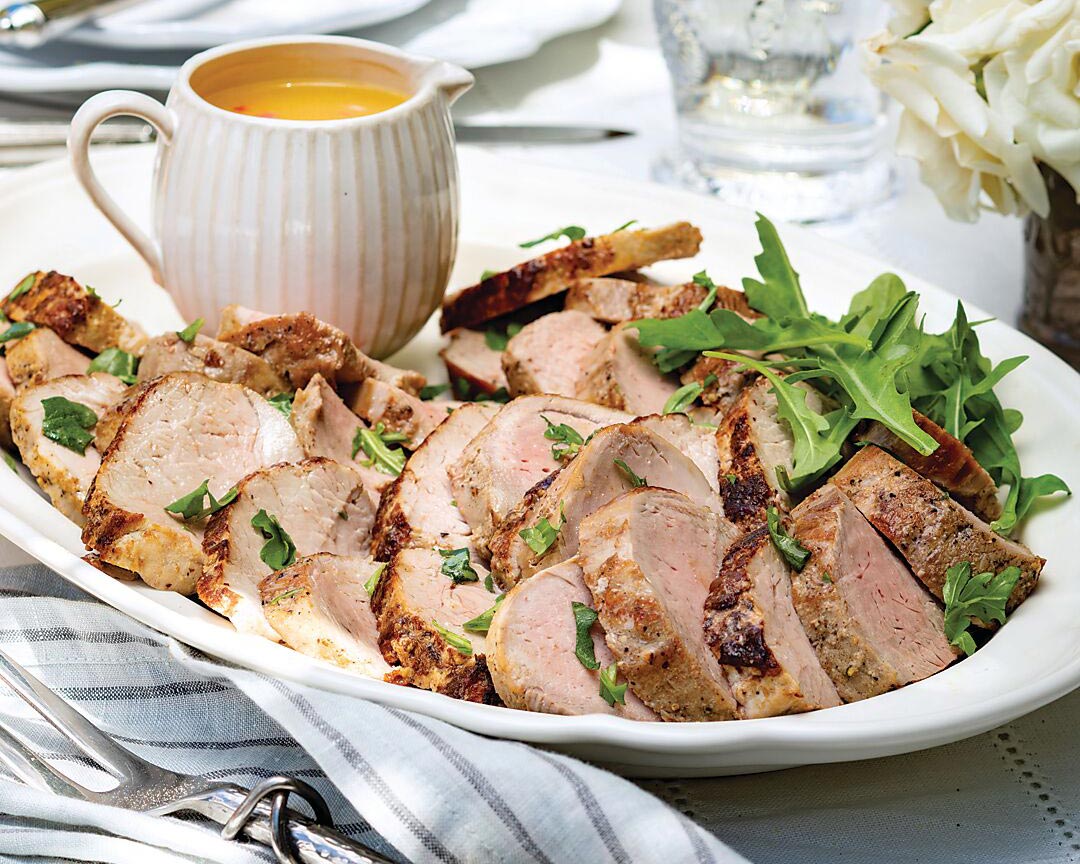 Served with a zesty vinaigrette, this pork tenderloin recipe is an elegant main dish for any dinner party.