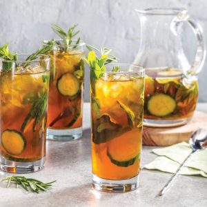 It’s a Pimm’s Cup with an exciting and flavorful twist! Infusing the liqueur with lemongrass adds citrusy notes that play well with the fresh cucumber and herbs in this fizzy take on everyone’s favorite cocktail.