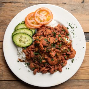 Lisa Nelson of Queen Trini Lisa shares a Red Beans and Rice recipe with island flair featuring Camellia Brand Red Beans, Savoie’s Smoked Andouille Sausage, and Cajun Country Rice.