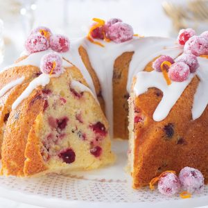 - Using a small spoon, drizzle and spread Buttermilk Glaze onto cooled cake. Garnish with sugared cranberries and satsuma zest strips, if desired. Serve with any extra glaze.