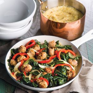 Sausage and Greens with Cheddar Cheese Grits