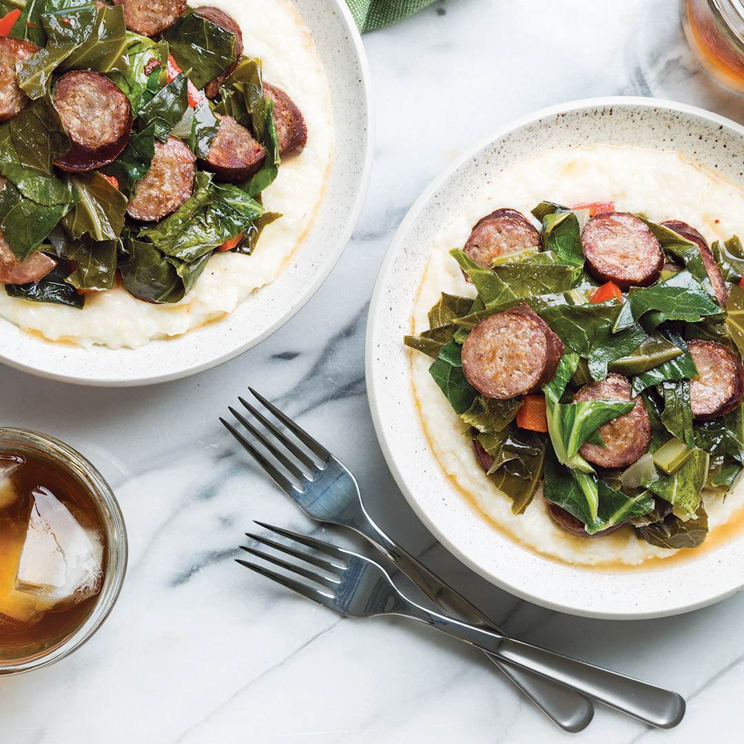 Sausage and Greens with Cheese Grits