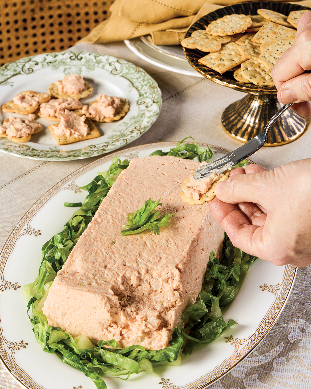 - Unmold onto a bed of shredded lettuce. Serve with crackers. Garnish with celery leaves, if desired.