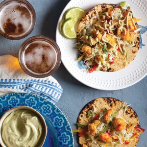 - Warm tortillas according to package directions. Serve fried crawfish in warm tortillas. Top with Cilantro-Lime Slaw, and drizzle with Creamy Avocado Sauce.