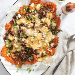 These Sweet Potato Cheese Fries with Debris are super easy to throw together and are sure to please any crowd.