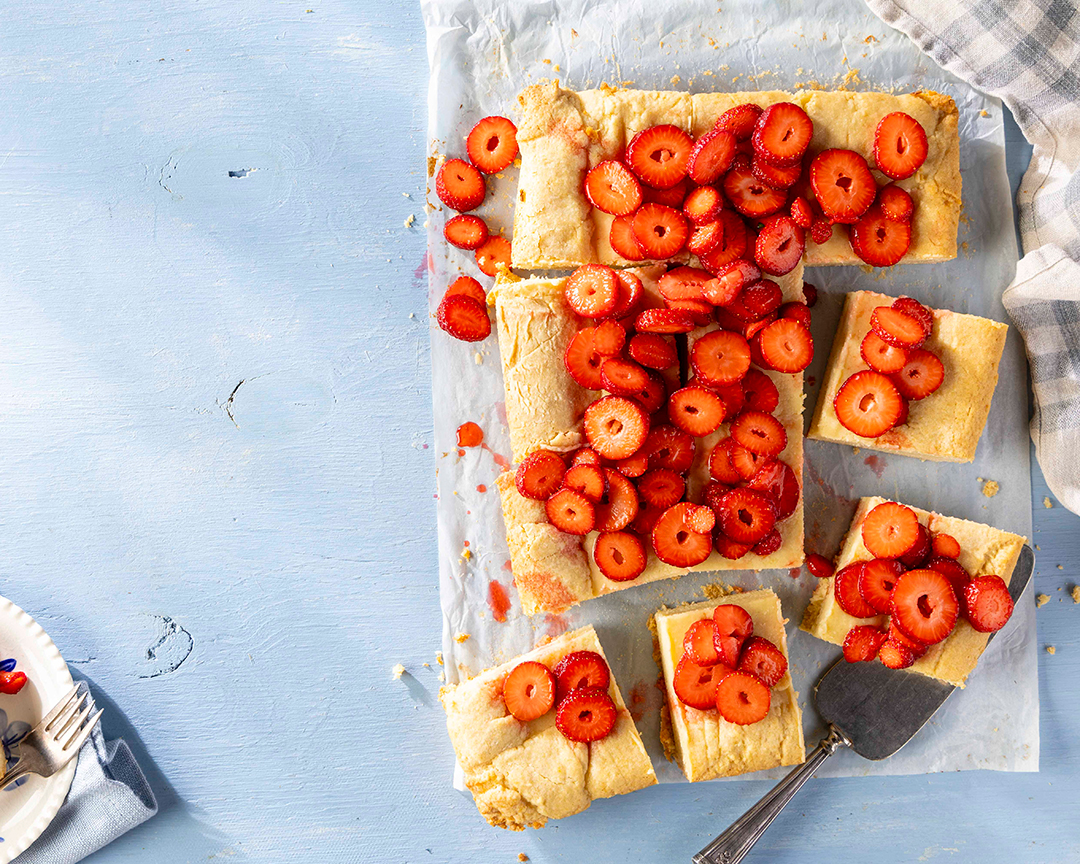 - For strawberries: In a medium bowl, toss together strawberries, sugar, and salt. Cover and let stand for 1 hour. Serve tart with strawberries.