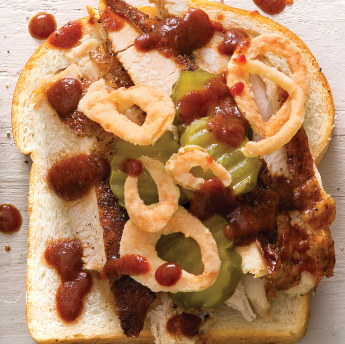 Drizzled with tasty barbecue sauce and crunchy fried onion, this isn’t your standard turkey sandwich.